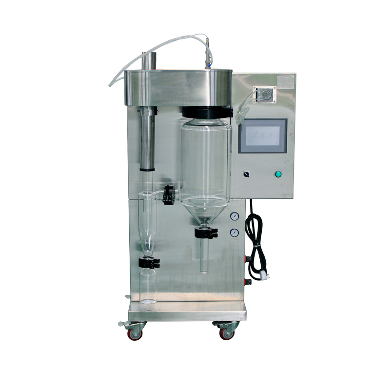 Miniature experimental micro spray dryer(spray dryer / spray dryer) and its main application in the laboratories of universities, research institutes and food pharmaceutical and chemical enterprises to produce micro particle powder, which is widely applicable to all solutions such as emulsions and suspensions, and is suitable for drying of heat sensitive substances, such as biological products, biological pesticides, enzyme preparations, etc. The material is heated only when it is sprayed into foggy particles, so it is only instantaneously heated to keep the active ingredients of these materials intact after drying.
