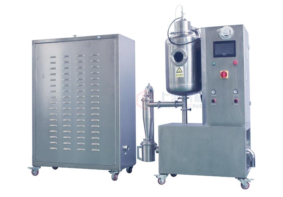 低溫噴霧干燥機適用于對熱敏感性物的干燥如生物制品、生物農藥、酶制劑等,因所噴出的物料只是在噴成霧狀大小霧滴時,才受到干燥風系統,故只是瞬間受熱,能保持這些活性材料在干燥后仍維持其活性成份不受破壞。